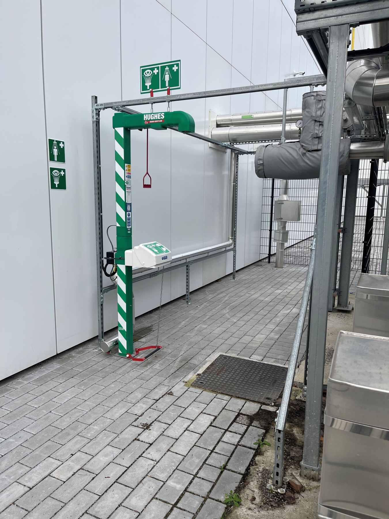 Une entreprise pharmaceutique à Braine-l'Alleud a opté pour des douches de sécurité extérieures de couleur vert vif. Cette teinte très visible améliore la localisation des douches en cas d’urgence, permettant aux employés de les repérer plus rapidement. De plus, les douches de sécurité sont entièrement protégées contre le gel et restent opérationnelles jusqu’à –20 °C, ce qui est essentiel pour garantir une utilisation sûre en conditions hivernales.