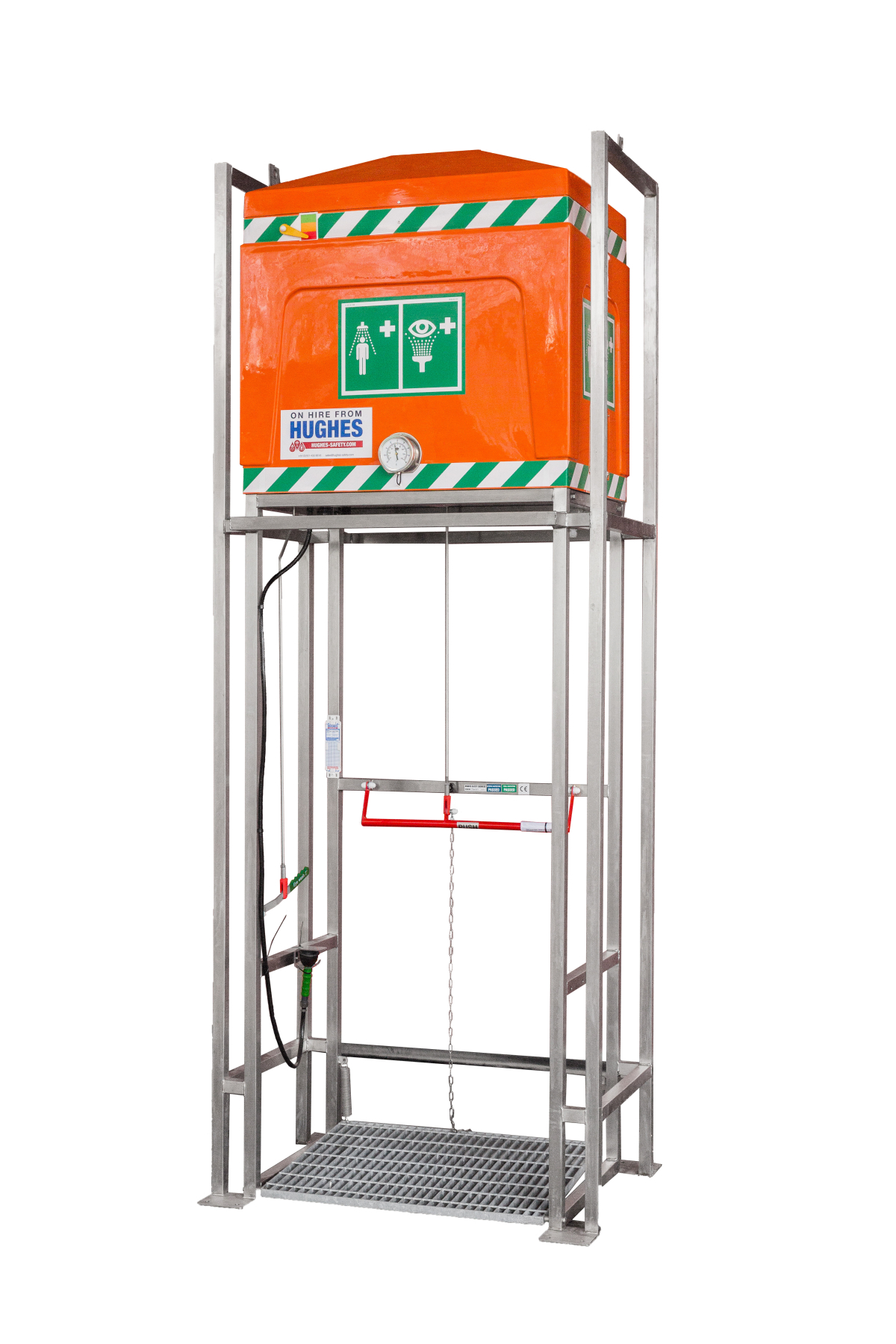 Een tankdouche met een capaciteit van 350 liter (spoelcapaciteit: 4,5 minuten) is een autonome veiligheidsdouche, ontworpen voor gebruik op locaties waar geen constante wateraanvoer beschikbaar is of waar de waterdruk onvoldoende is voor standaard nooddouches.