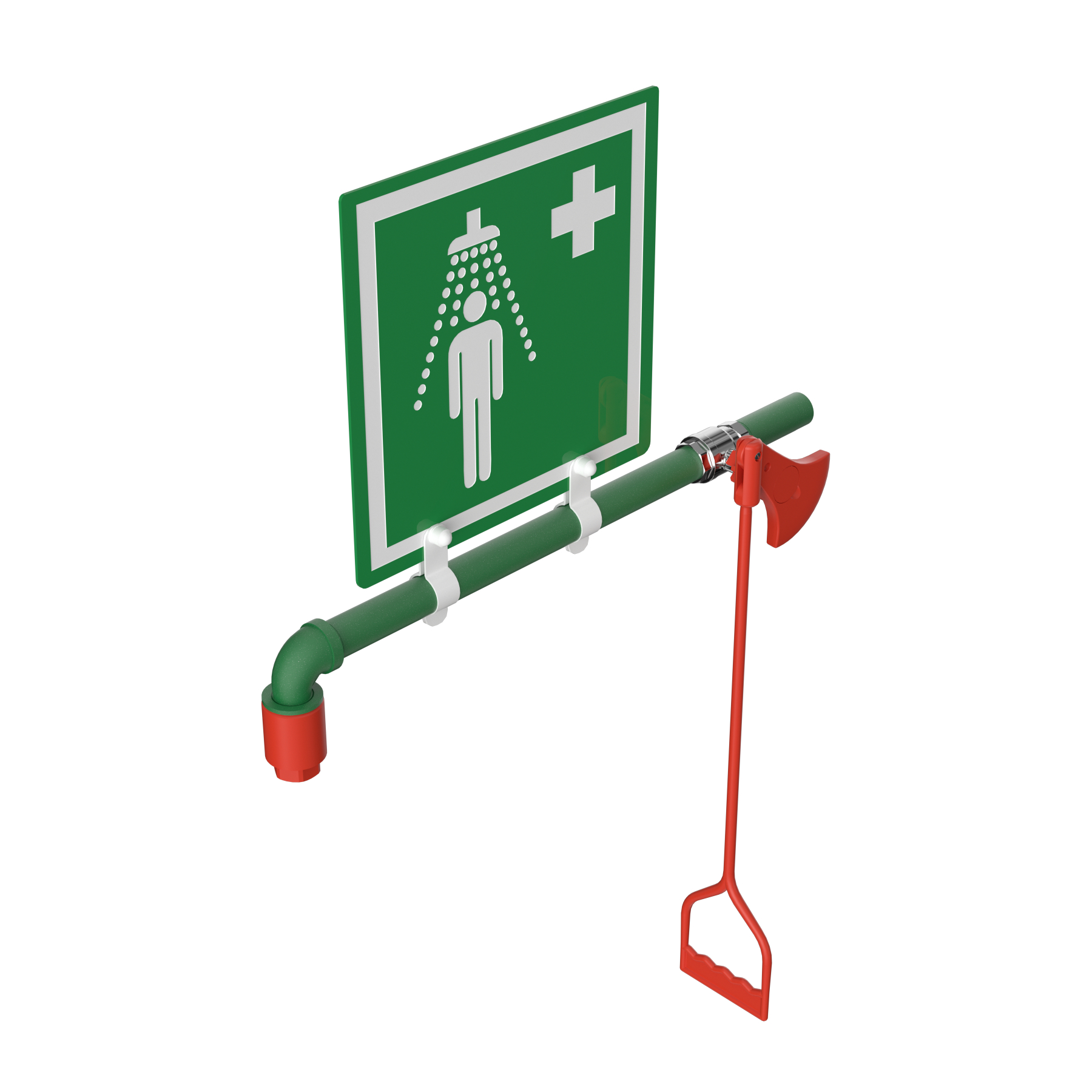 Muurmontage : Gegalvaniseerd stalen en groengelakte nooddouche