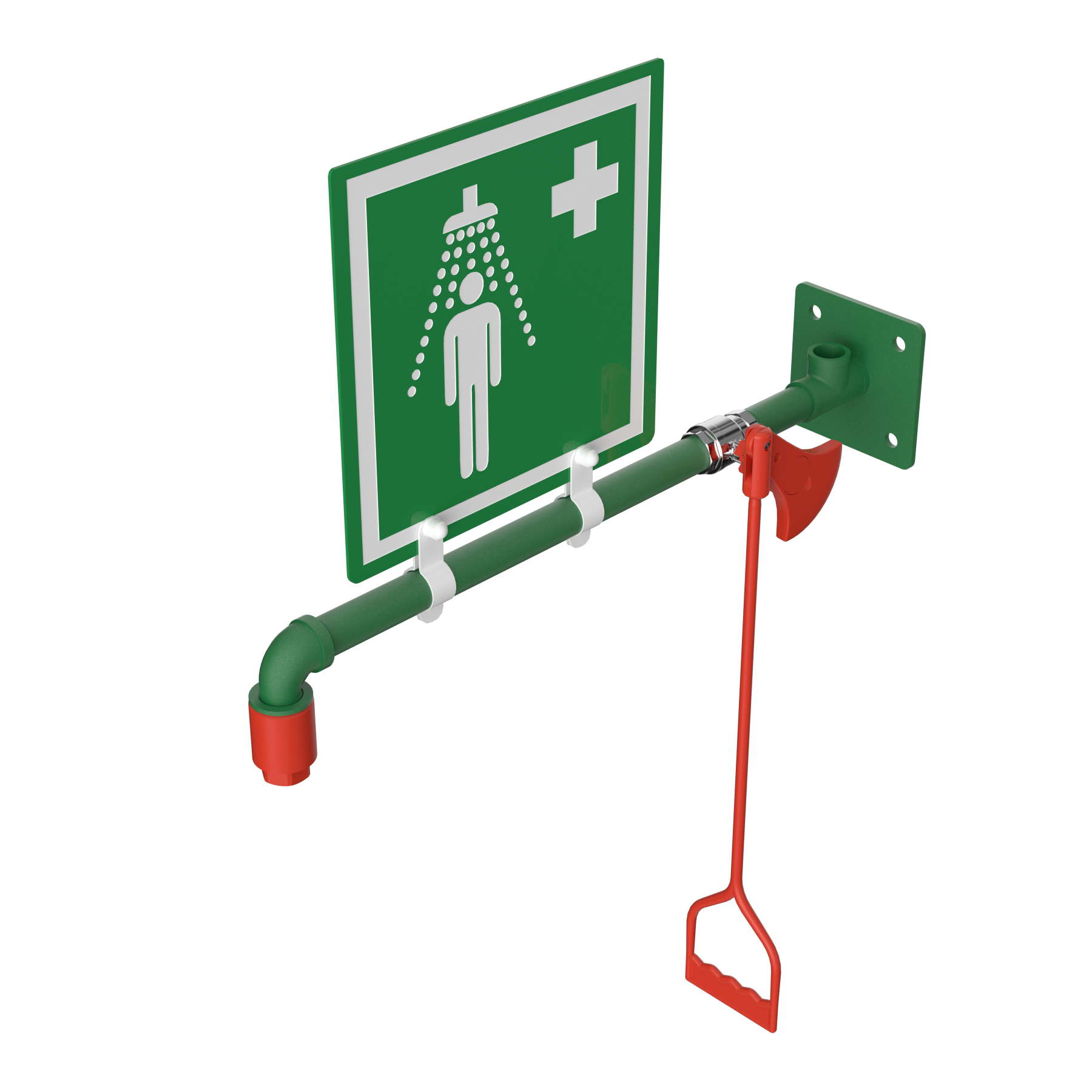 Muurmontage : Gegalvaniseerd stalen en groengelakte nooddouche