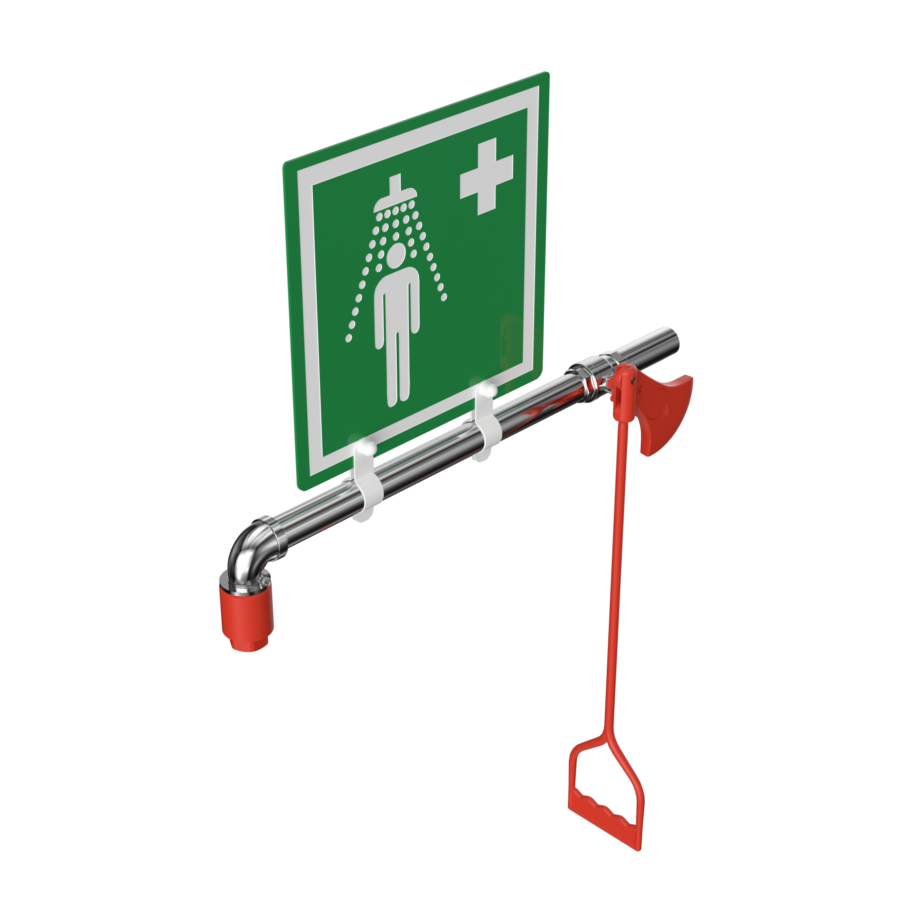 Onverwarmde, roestvrij stalen 316 nooddouche voor muurbevestiging. De nooddouche wordt geactiveerd door middel van een trekhendel. De afsluiters die gebruikt worden zijn steeds van RVS 316.