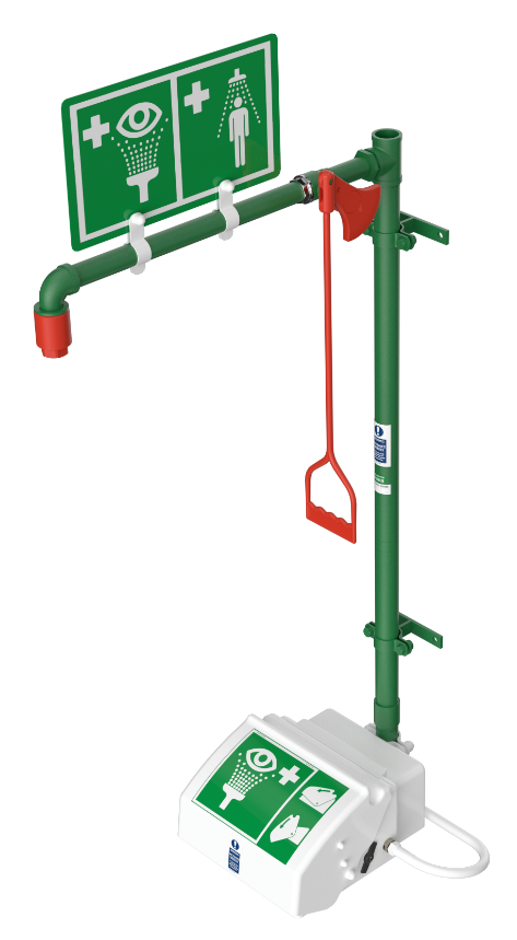 De plensdouche activeert u eenvoudig met een trekhendel, terwijl de oogdouche geactiveerd wordt door het openen van het deksel. Dankzij het deksel blijft de oogdouche beschermd tegen vuil en stof.