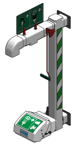 De plensdouche wordt geactiveerd via een trekhendel. De nooddouche is gecombineerd met een vorstvrije, elektrisch getraceerde ABS oogdouche voorzien van een deksel, dekselactivering en debietregelaar. De oogdouche activeert u door het deksel te openen, na gebruik sluit u het deksel weer eenvoudig. Dankzij het deksel blijft de oogdouche beschermd tegen vuil en stof.