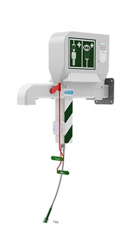 Tot -35°C vorstvrije elektrisch getracete (240V) nooddouche voor wandmontage gecombineerd met een handbediende oogdouche op een flexibele slang. Bovenop de nooddouche is er een pictogrambox voorzien, waar eventueel een lamp in geplaatst kan worden. De roestvrij stalen (316) waterbuis aan de binnenkant is getracet en geïsoleerd en voorzien van een witte omkasting in polyethyleen. Leverbaar in atex en niet-atex uitvoering. Er is een gecombineerde oogdouche op flexibele slang die geactiveerd wordt via een tweede trekhendel. Deze nooddouche is ook leverbaar met wandmontageplaat. Andere beschikbare kleuren voor de omkasting : groen, oranje, geel en rood.