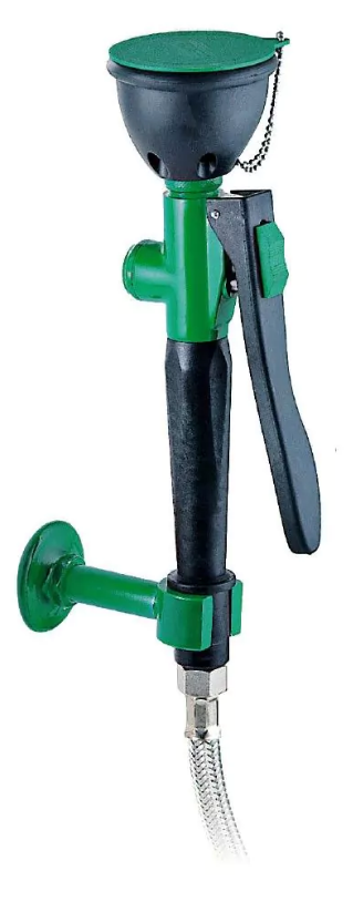 Handbediende gezichts-/oogdouche met 1 sproeikop gemonteerd op een flexibele slang geschikt voor wand- of muurmontage.