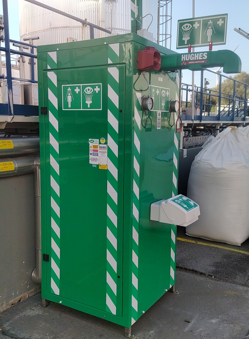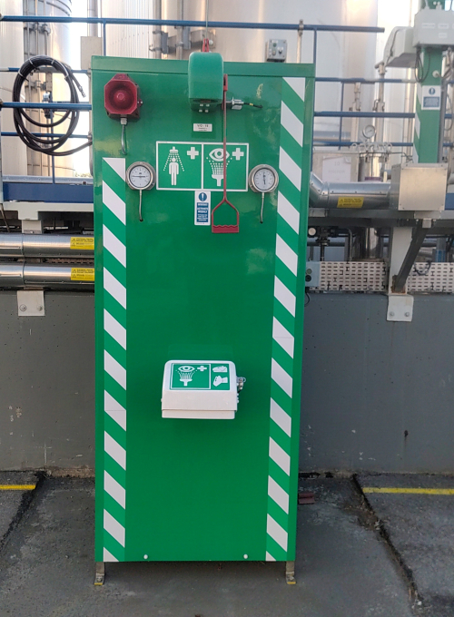 Een chemiebedrijf, gespecialiseerd in de productie van vloeibare meststoffen en andere vloeibare chemicaliën, in Europoort Rotterdam heeft gekozen voor een vorstvrije boilernooddouche met verwarmd water conform EN-15154-5. De nooddouche is uitgerust met een alarmmelding, die zowel lokaal een sirene en flitslicht activeert als een signaal doorstuurt naar de controlekamer. Hierdoor is het systeem volledig inzetbaar voor veilige, betrouwbare en direct beschikbare noodspoeling in het geval van incidenten.