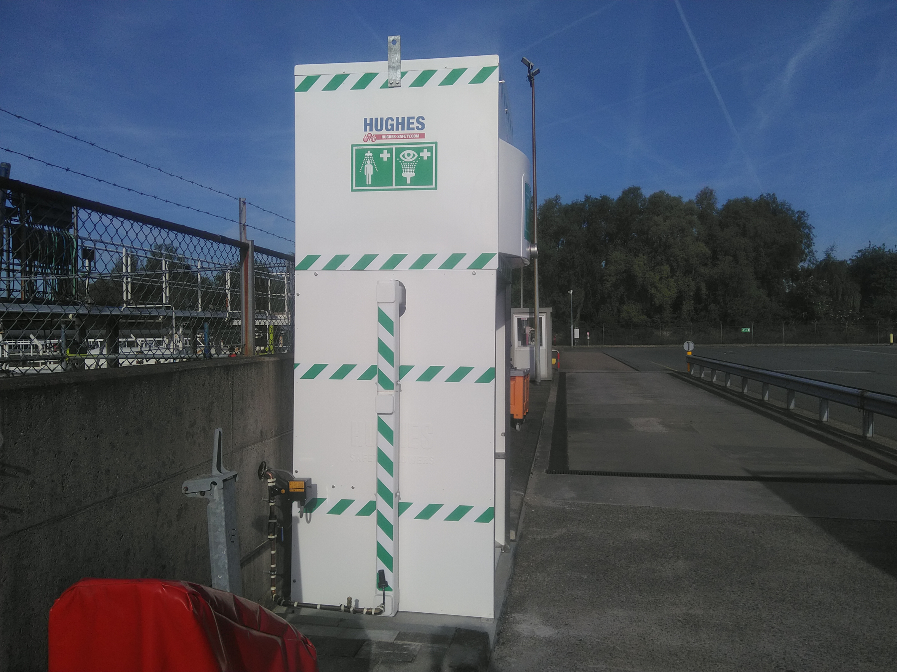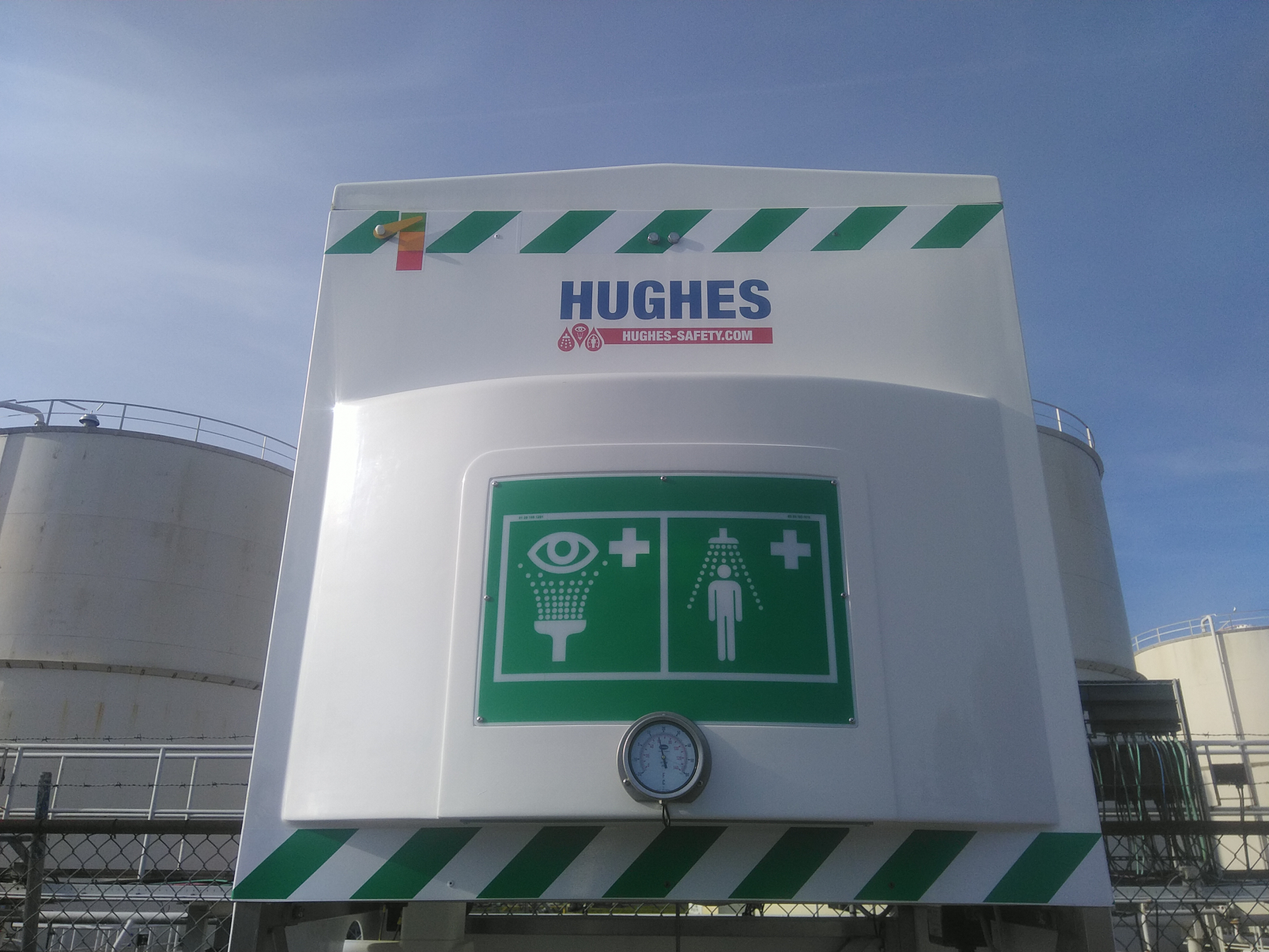 De raffinaderij op Pernis in Rotterdam heeft gekozen voor 1200-liter tankdouches met verwarmd water in de kleur wit. Deze units voldoen volledig aan alle opgelegde normen van EN-15154-5. Aan de voorzijde is in de pictogrambox extra verlichting geïntegreerd voor optimale zichtbaarheid en veiligheid.