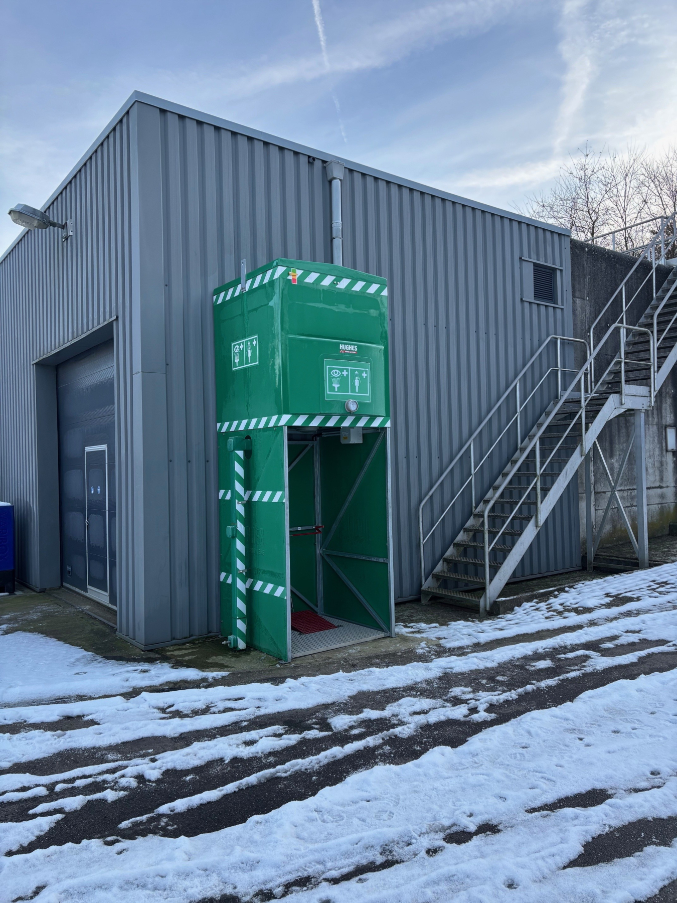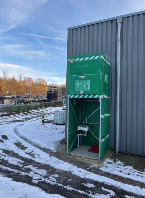 RWZI Tervuren, uitgebaat door Aquafin, koos recent voor een 1200-liter tankdouche met verwarmd water, volledig conform EN 15154-5. Deze veiligheidsdouche garandeert een onmiddellijke en continue toevoer van verwarmd water, zodat medewerkers in geval van een incident steeds op een veilige en betrouwbare noodvoorziening kunnen rekenen.