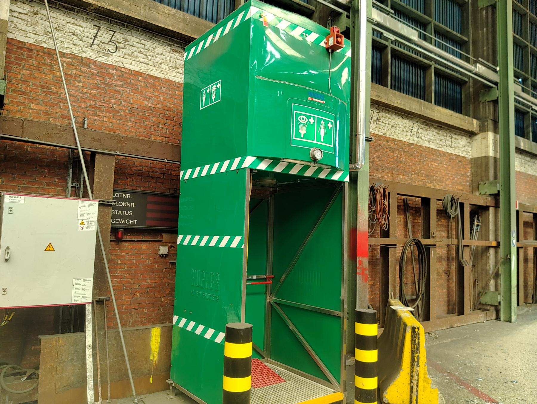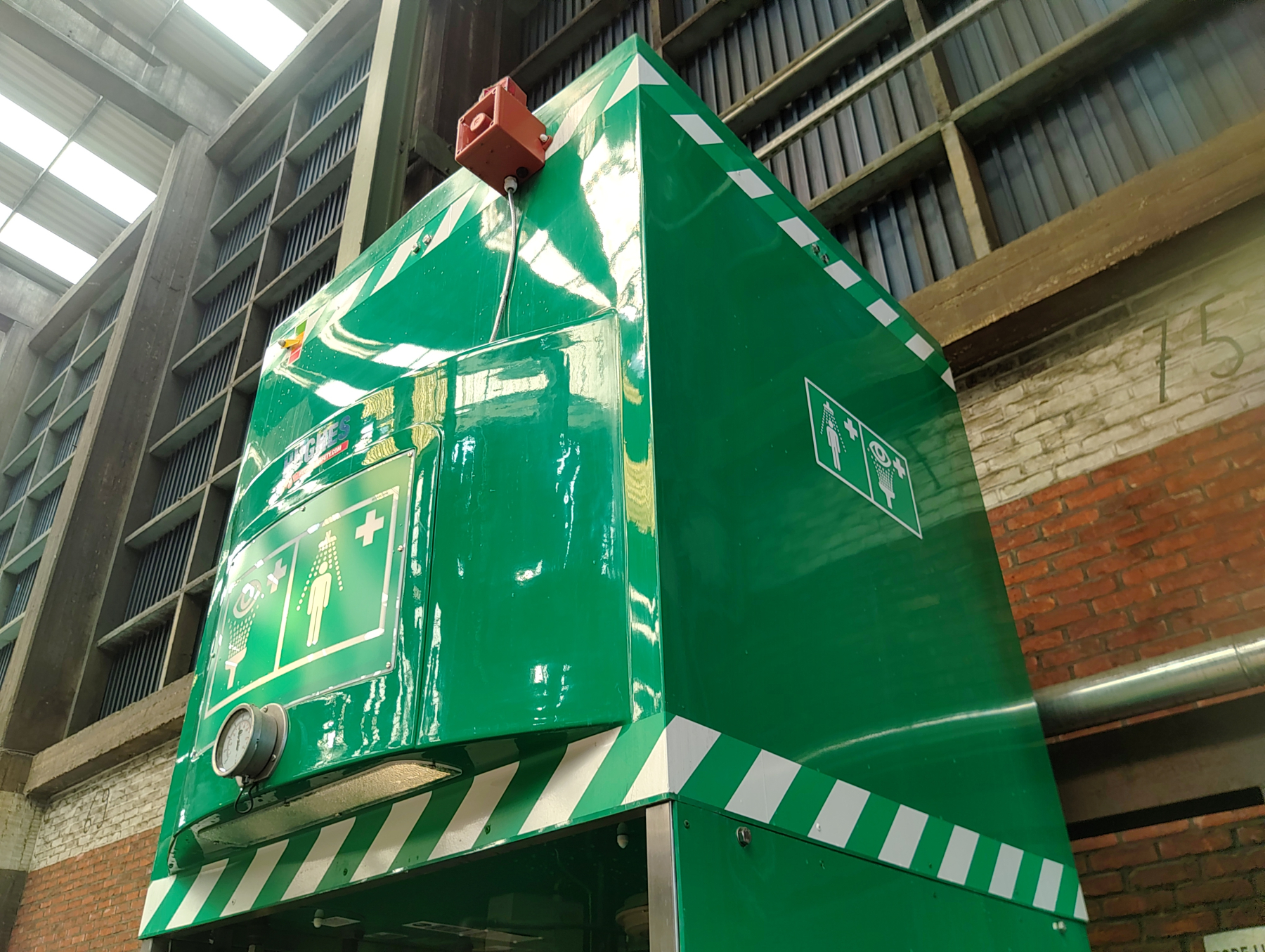Recent hebben wij bij de zinkfabrieken in Balen en Pelt meerdere nooddouches met verwarmd water geleverd, volledig conform EN-15154-5. Er werd gekozen voor een uitvoering met een opslagcapaciteit van 1500 liter water. De tankdouches zijn uitgerust met alarmmeldingen, een geïntegreerde lekbak onderaan de unit en een verlichte pictogrambox. Ook de ingang van de cabine wordt helder verlicht om de zichtbaarheid en veiligheid in noodsituaties te vergroten.